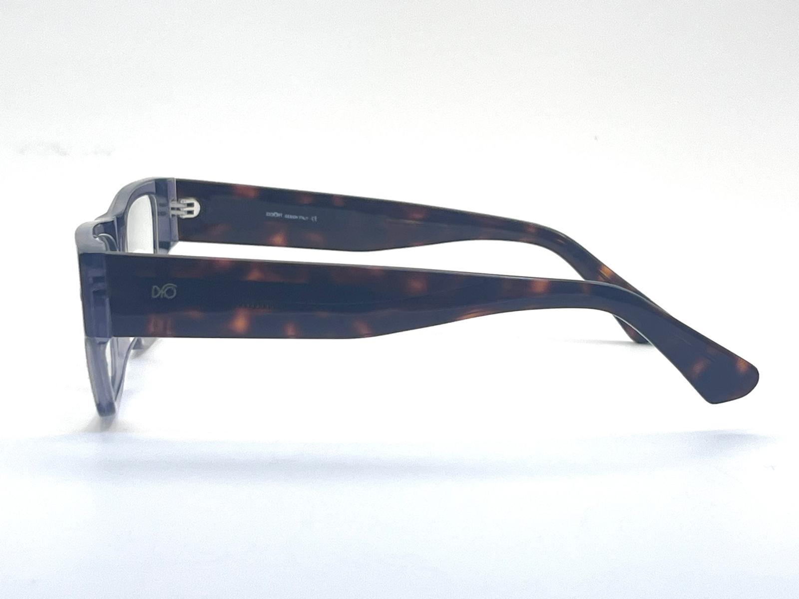 THIS FRAME FRONT SIDE GRAY TRANSPARENT, A DARK TORTOISESHELL PATTERN ON THE TEMPLES , CLASSIC LUXURY DESIGN