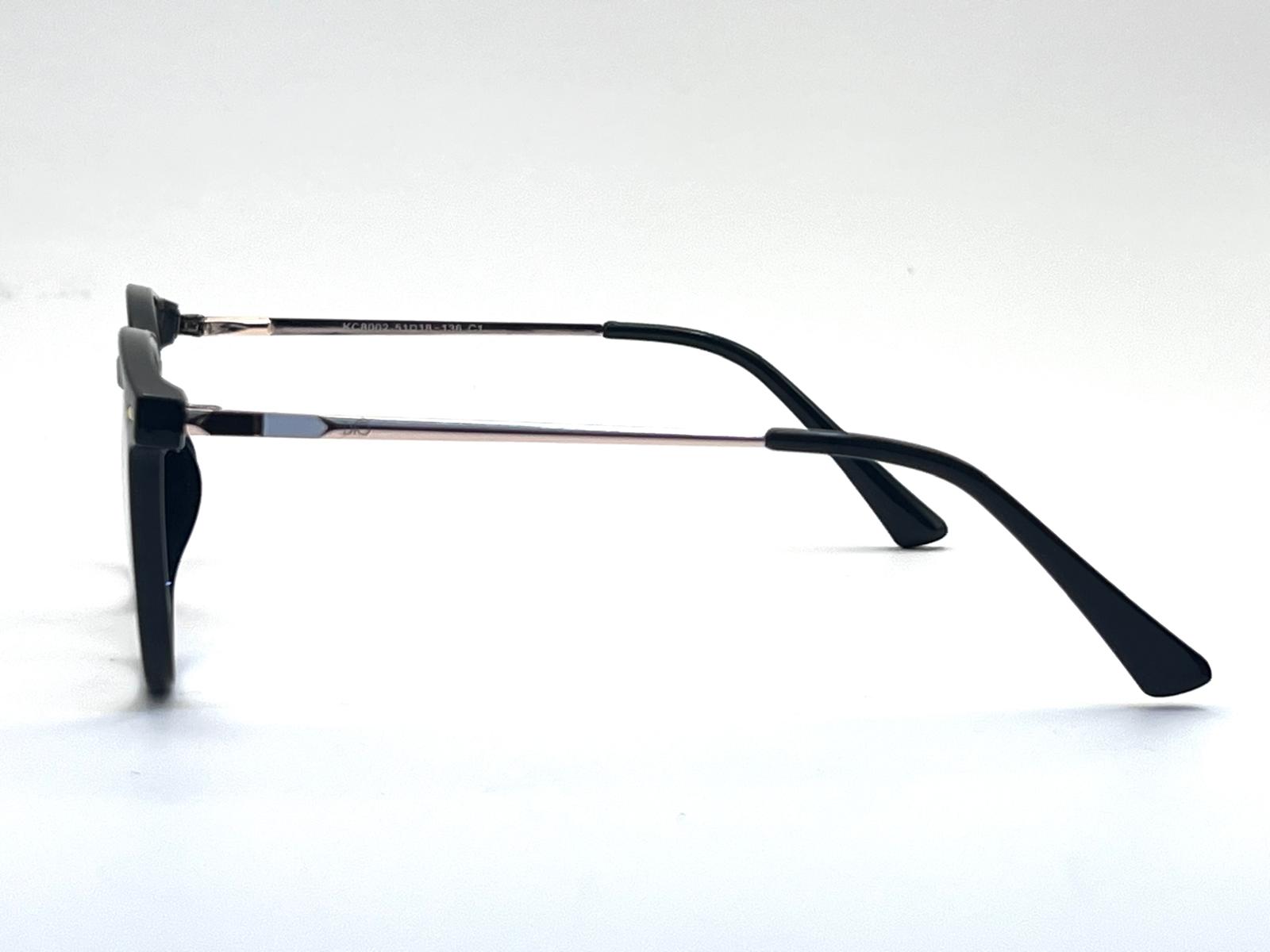 THIS FRAME IS BLACK, THE TEMPLES A GOLD COLOUR ,FANCY TYPE